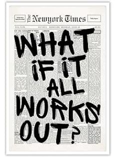 Retro Black And White Newspaper Poster What If It All Works Out Canvas Wall Art Positive Affirming Quote Minimalist Prints Painting For Home Bedroom Dorm Wall Decor 8x12in Unframed
