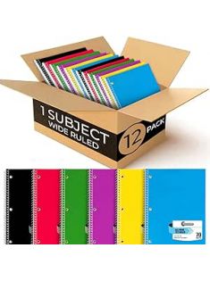 Rosmonde Spiral Notebooks, 12 Pack, 1 Subject Notebook, Wide Ruled, 70 Sheets, 8 x 10-1/2", 3 Hole Punched, School Supplies, Bulk Single Subject Spiral Notebook Bulk, Assorted Colors Pack of Notebooks