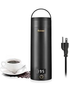 Sekaer Travel Electric Tea Kettle Portable Small Mini Coffee Kettle, with 4 Variable Presets, Personal Hot Water Boiler 304 Stainless Steel with Auto Shut-Off & Boil Dry Protection, SY-618B