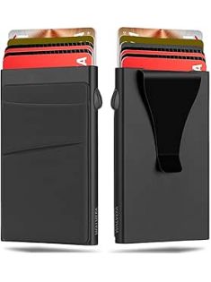 Slim Wallet for Men, Pop Up Card Holder Wallet RFID Blocking, Minimalist Metal Bussiness Credit Card Wallet with Money Clip & Pockets, Aluminum Thin Front Pocket Wallet (Black)
