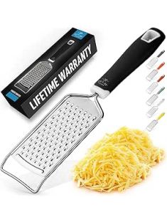 Zulay Kitchen Professional Cheese Grater Stainless Steel - Durable Rust-Proof Metal Lemon Zester Grater With Handle - Flat Handheld Grater For Cheese, Chocolate, Spices, And More - Black