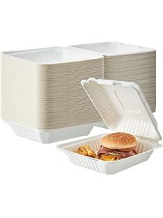 [8X8 1-Compartment 75-Pack 100% Compostable Clamshell Take Out Food Containers with Lids, Bio Natural Disposable Bagasse Togo Trays, Eco-Friendly Biodegradable Made of Sugar Cane Fibers
