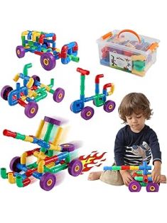 ZOZOPLAY STEM Learning Toy Tubular Pipes & Spouts & Joints 64 Piece Build Bicycle, Tank, Scootie, Moter Skills Endless Designs Educational Building Blocks Set for Kid Ages 3+ Multicolor