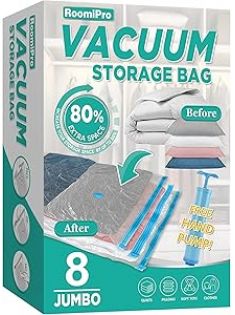 Space Saver Vacuum Storage Bags, 8 Jumbo Vacuum Sealer Bags with Pump, Storage Vacuum Sealed Bags for Clothing, Comforters, Blanket Storage, Bedding