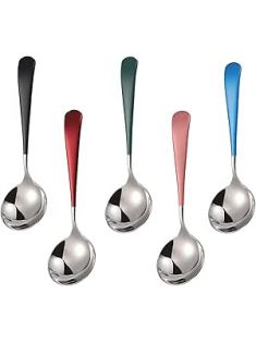 Soup Spoons Stainless Steel, 18/10 Round Head Soup Spoons, Modern Thick Short handle 304 Stainless Steel Korean Spoon, Dinner Metal Spoons for Soup, Grain,Dessert,Milk,Tea,Coffee, 6.3 Inch, Set of 5