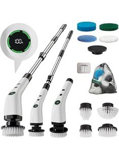 Swyprrix Electric Bathroom Cleaning Brush, Cordless Spin Scrubber Full Body Waterproof IPX7 with Adjustable Handle, 8 Replaceable Brush Heads for Bathtub/Kitchen/Window/Home -SD-CTB01