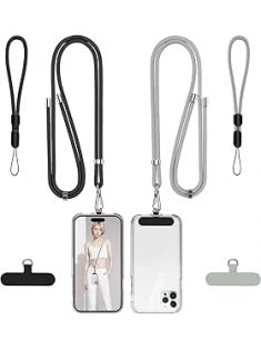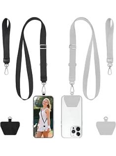 takyu Phone Lanyard, 2 Pack Crossbody Anti-Drop Neck and Wrist Strap with 2 Pcs Tether Patches, Secure Hands-Free Compatible for iPhone Samsung Perfect for Nurses, Teachers, Travel, Hiking Black+Gray