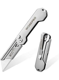 WORKPRO Premium Utility Knife, Retractable All Metal Heavy Duty Box Cutter, Quick Change Blade Razor Knife, with 10 Extra Blades