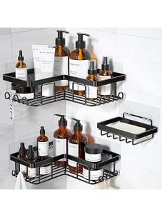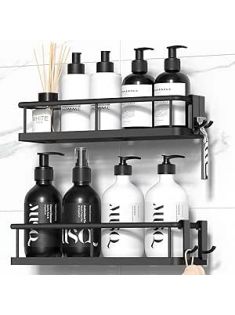 YASONIC Shower Caddy Adhesive, No Drill Bathroom Shower Organizers, with Removable Hooks, Rust Proof Shower Shelves, Wall-Mounted Shower Holder, Black, 2 Pack