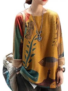 YESNO Women Christmas Sweater Graphic Printed Oversized Pullover Sweaters Casual Loose Knit Tops S01
