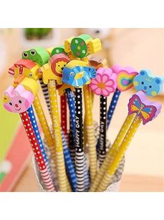 Yansanido 40 Pcs Colorful 7.28 Inch Length Random Cartoon Eraser Pencils, Cute Pencils for Office, School Supplies Students Children Gift (40)