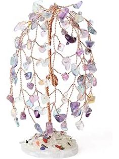 YATOJUZI Crystal Tree of Life Rainbow Fluorite Feng Shui Money Tree with Agate Base Copper Wire Wrapped Natural Crystals Gemstones Trees Decor for Home Office Desk Decorations Gifts for Women Men