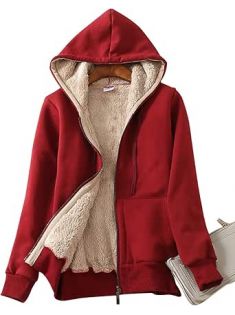 Yeokou Women's Casual Full Zip Up Sherpa Lined Hoodie Sweatshirt Jacket Coat