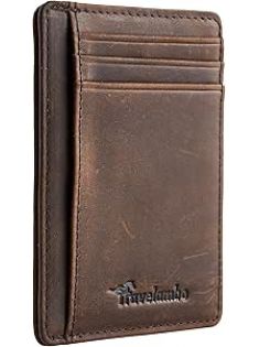 Travelambo Slim Wallet Front Pocket Minimalist Leather RFID Blocking Medium Size