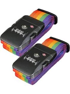 Travel Luggage Strap Adjustable Suitcase Packing Belt with TSA Combination Lock(Rainbow 2 Pack)