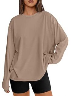 Trendy Queen Womens Oversized Long Sleeve T Shirts 2025 Basic Crewneck Tee Fall Tops Casual Workout Y2K Clothes