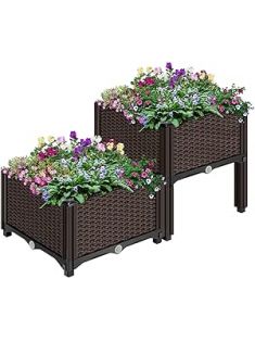 VIVOHOME 2 Packs Elevated Plastic Raised Garden Bed Planter Kit, Outdoor Planters Above Ground Flower Vegetable Standing Planter Box for Patio Deck Porch W/Drainage Holes