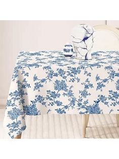 AnyDesign Blue Floral Tablecloth Chinoiserie Flower Square Fabric Table Cover for Spring Picnic Home Kitchen Dining Table, 60 x 60 Inch