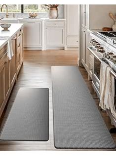 Anti-Fatigue Kitchen Mat Set – 2-Piece Memory Foam Cushioned Mats for Standing – Gray, 18×30 & 18×60, 0.4 in Thick, Waterproof, Non-Slip – Homergy