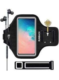 Armband for Samsung Galaxy S24/S23/S22/S21/S20/S10/S9/S8 up to 6.2", Water Resistant Running Exercise Gym Bag with Card Slot and Key Holder (Black)