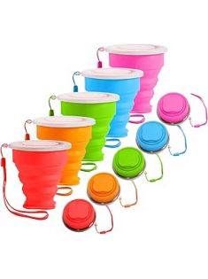 5Pcs Silicone Collapsible Cup for Travel, Reusable Folding Camping Cup Mug with Lids, Portable Expandable Drinking Cup Collapsible Water Cups Mugs Set Telescopic Camping Tumblers for Hiking