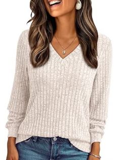 AUTOMET Womens V Neck Long Sleeve Shirt Fall Fashion Tops Tunic Dressy Casual Sweater Clothes Cute Trendy Work Outfits 2025