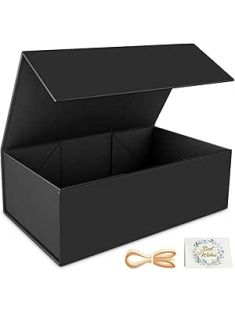 Black Gift Box, 9.5x6x3'' Gift boxes for Presents with Lids Magnetic Closure Rectangle Collapsible for Groomsman Proposal Box, Wedding, Christmas, Halloween, Birthday Gift Packging