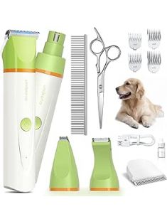 Dog Grooming Clippers Kit, All-in-One Low Noise Dog Paw Trimmer Electric Rechargeable Cordless Small Quiet Pet Foot Shaver Stainless Steel Scissors and Comb for Dogs Cats at Home