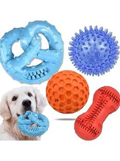Dog Chew Toys Aggressive Chewers - Puppy Teething Chew Toy Extra Durable Dog Toys for Small Medium Large Breeds Include Squeaky Balls Teeth Brush Rubber Chew Toys Interactive Play