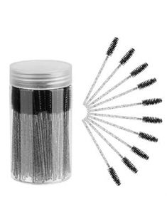 CHEFBEE 100PCS Disposable Eyelash Brush, Mascara Wands Makeup Brushes Applicators Kits for Eyelash Extensions and Eyebrow Brush with Container (Black)
