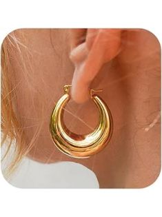 Chunky Gold Hoop Earrings for Women, 14k Gold Plated Thick Triple Hoop Earrings Hypoallergenic Trendy Chunky Gold Hoops Earrings Dainty Jewelry Gifts for Women
