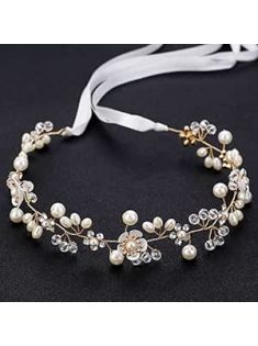 KAYZON Hair Accessories: Bridal Pearl Flower Headpiece Headband for Girls, Flower Girls, and Women (Gold)