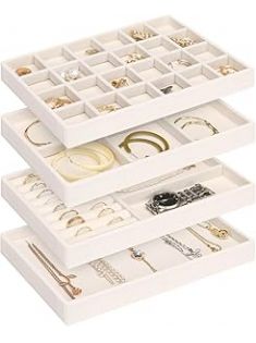 Jenseits 4 Jewelry Organizer Drawer Insert, Stackable Velvet Jewelry Tray Organizer Display Case Storage Containers, Earring Holder Necklace Watch Bracelet Accessary Ring Trays, Gift For Women (Beige)