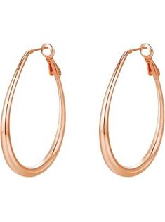 Lightweight Oval Hoop Earrings for Women - 14K Gold Plated, Rose Gold Plated and Sterling Silver Plated Large Oblong Hoop Earrings for Women Statement Jewelry Gift