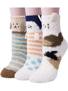 Loritta 3 Pairs Womens Fuzzy Socks Winter Warm Fluffy Soft Slipper Home Sleeping Cute Animal Socks