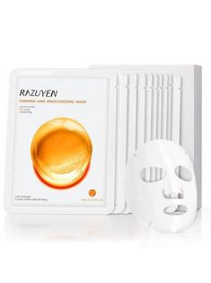 RAZUYEN Firming and Moisturizing Sheet Face Masks with Hyaluronic Acid and Peptides, Reduce Fine Lines and Wrinkles, Hydrating & Anti-Aging Essence Mask, Facial Skin Care (Pack of 10)