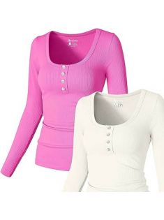 OQQ Womens 2 Piece Long Sleeve Tops Seamless Ribbed Button Stretch Tee Shirts Tops