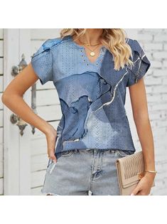 Women's Tops Summer V Neck Petal Short Sleeve Eyelet Casual Loose Tunic Blouses Floral Pointelle Hollow Out Tee Shirts