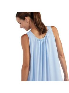 Miss Elaine Nightgown - Women's Short Nylon Tricot Gown, Sleeveless Gown with Petal Embroidery at Round Neck