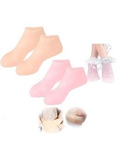 Moisturizing Foot Mask Exfoliating Silicone Socks Beach Protective Socks, Women Foot Spa Pedicure Silicone Socks, Anti Slip Moisturizing Soft Gel Socks for Repairing Cracked Heel Dry Feet (Pink+Orange