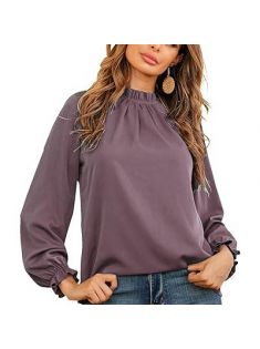 LYANER Women's Frill Mock Neck Flounce Long Sleeve Solid Blouse Office Shirt Top