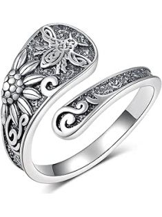 Thumb Rings for Women 925 Sterling Silver Adjustable Spoon Ring Vintage Bee Thumb Jewelry Gifts for Women