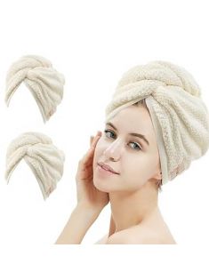 M-bestl 2 Pack Microfiber Hair Towel Wrap,Hair Drying Towel with Button, Absorbent and Soft,Anti-frizz Head Towel to Dry Hair Quickly