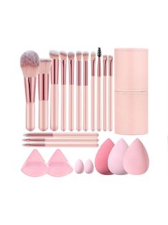 14 Pcs Travel Makeup Brush Set Portable Pink Small Make up Brushes with Case,5 Pcs Makeup Sponge,Valentine's Day Gift,Mother's Day Gift for Foundation Powder Concealers Eye Shadows