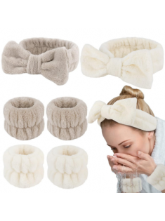 6PCS Spa Headband and Wristband Set, Face Wash Headband Makeup Skincare Headband Wrist Bands for Washing Face