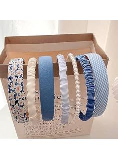 Agirlvct 7 Pack Headbands for Women Girls,Non Slip Flower Headband,Fashion Pearl Headbands,Twisted Headband,Different Designs White Head Bands Set Student Hair Accessories Summer Beach(Blue)