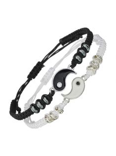 Best Friend Bracelets for 2 Matching Yin Yang Adjustable Cord Bracelet for Bff Friendship Relationship Boyfriend Girlfriend Valentines Gift