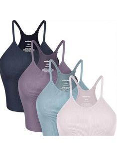 ASLABCREW Women's Crop 4 Piece Seamless Ribbed Camisole Strappy Cropped Tank Tops
