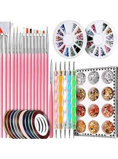 Teenitor Nail Pen Designer, Stamp Nail Art Tool with 15pcs Nail Painting Brushes, Nail Dotting Tool, Nail Foil, Manicure Tape, Color Rhinestones for Nails