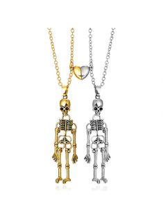 Halloween human skeleton skull pendant necklace, magnetic love attracted lovers necklace, men and women friendship necklace, Punk hip-hop festival jewelry